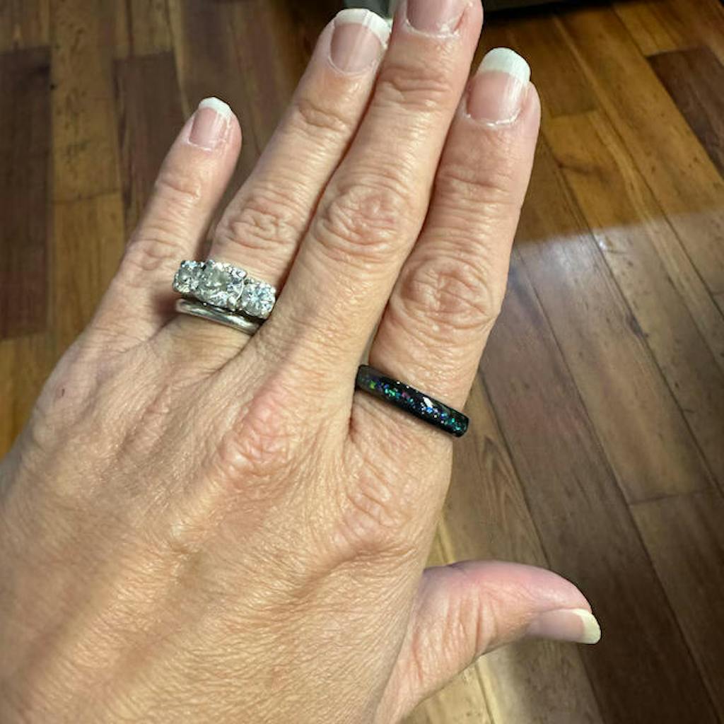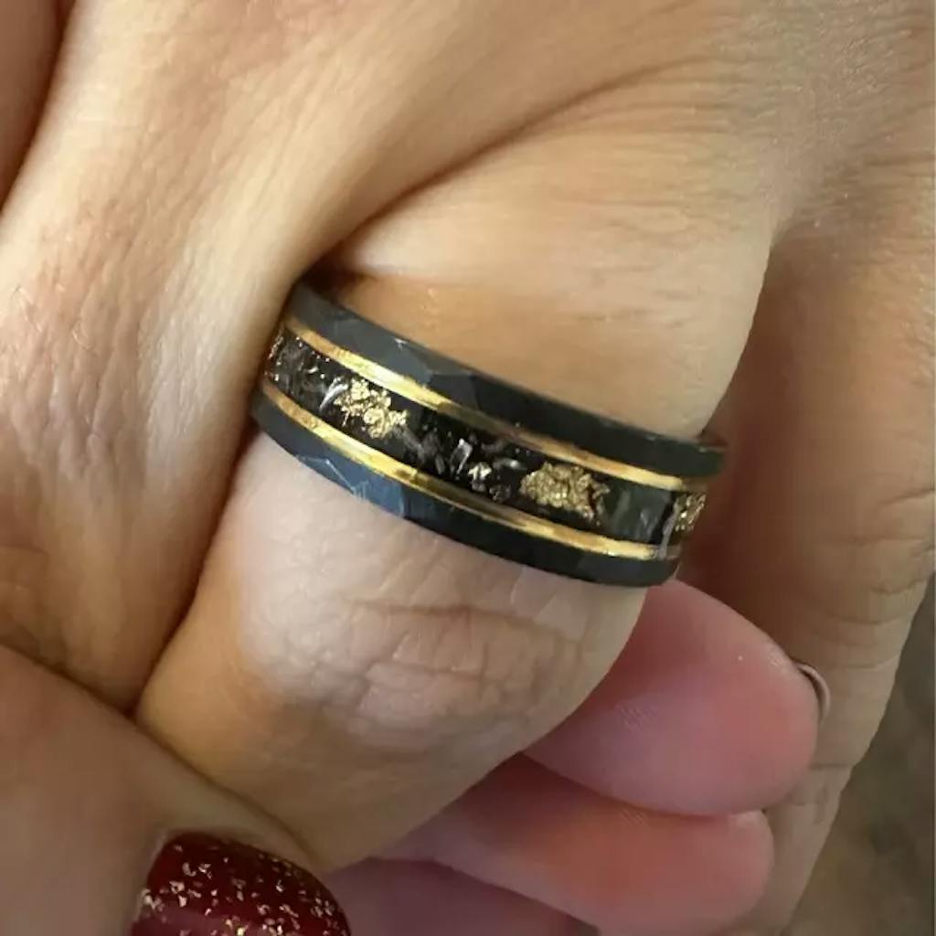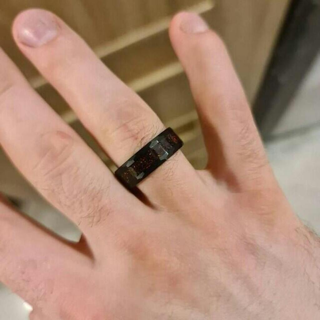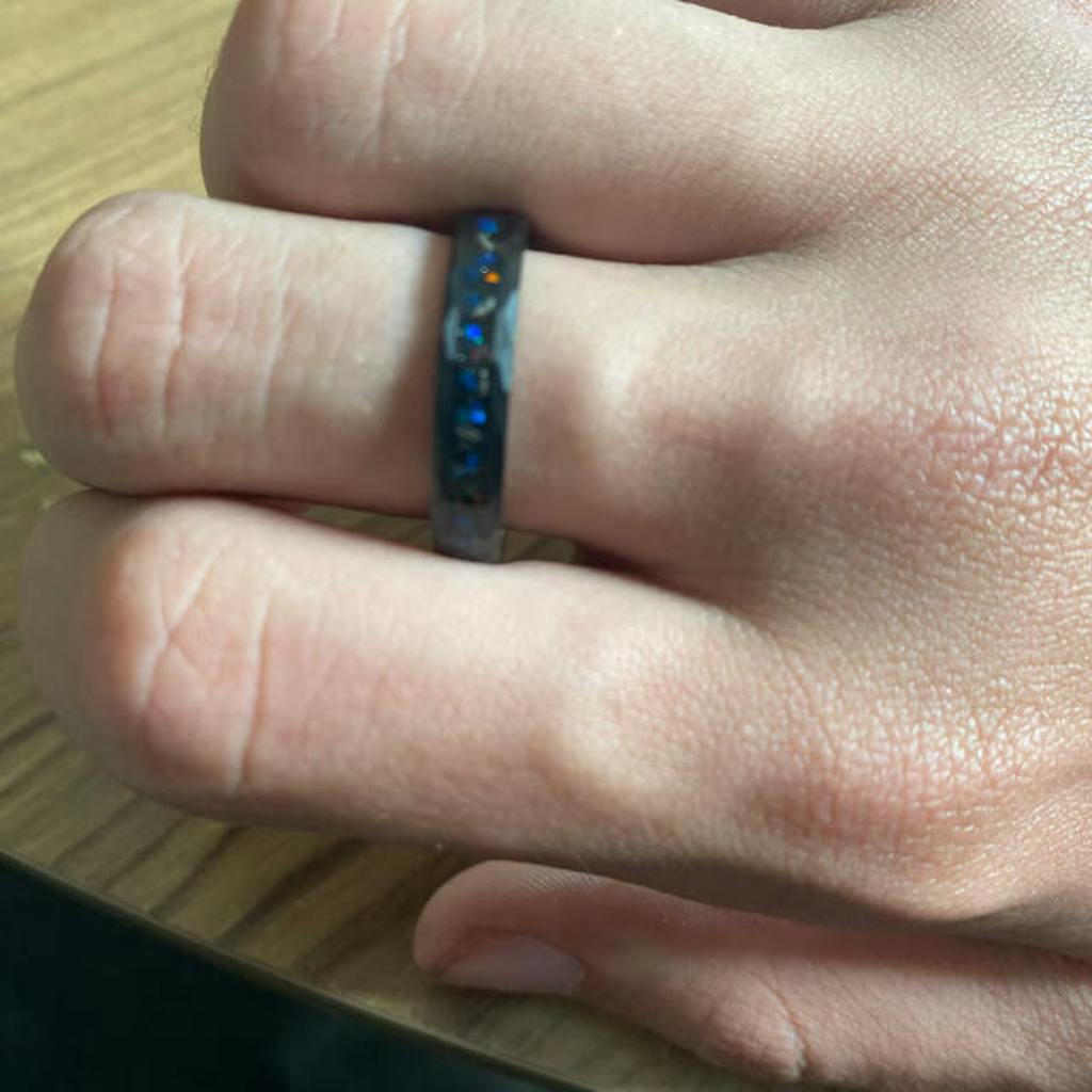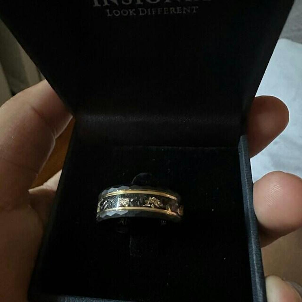 The ring is absolutely gorgeous and a perfect fit for my husband! Everyone comments on how beautiful it is and how unique it looks. The shipping was a bit of a pill only because it didn’t update from pre-transit to being shipped until the literal day before it arrived. Since I was “re-proposing” in a sense I was hoping to be able to plan things out more, but it all worked out in the end. Customer service was great, and very timely in their responses!