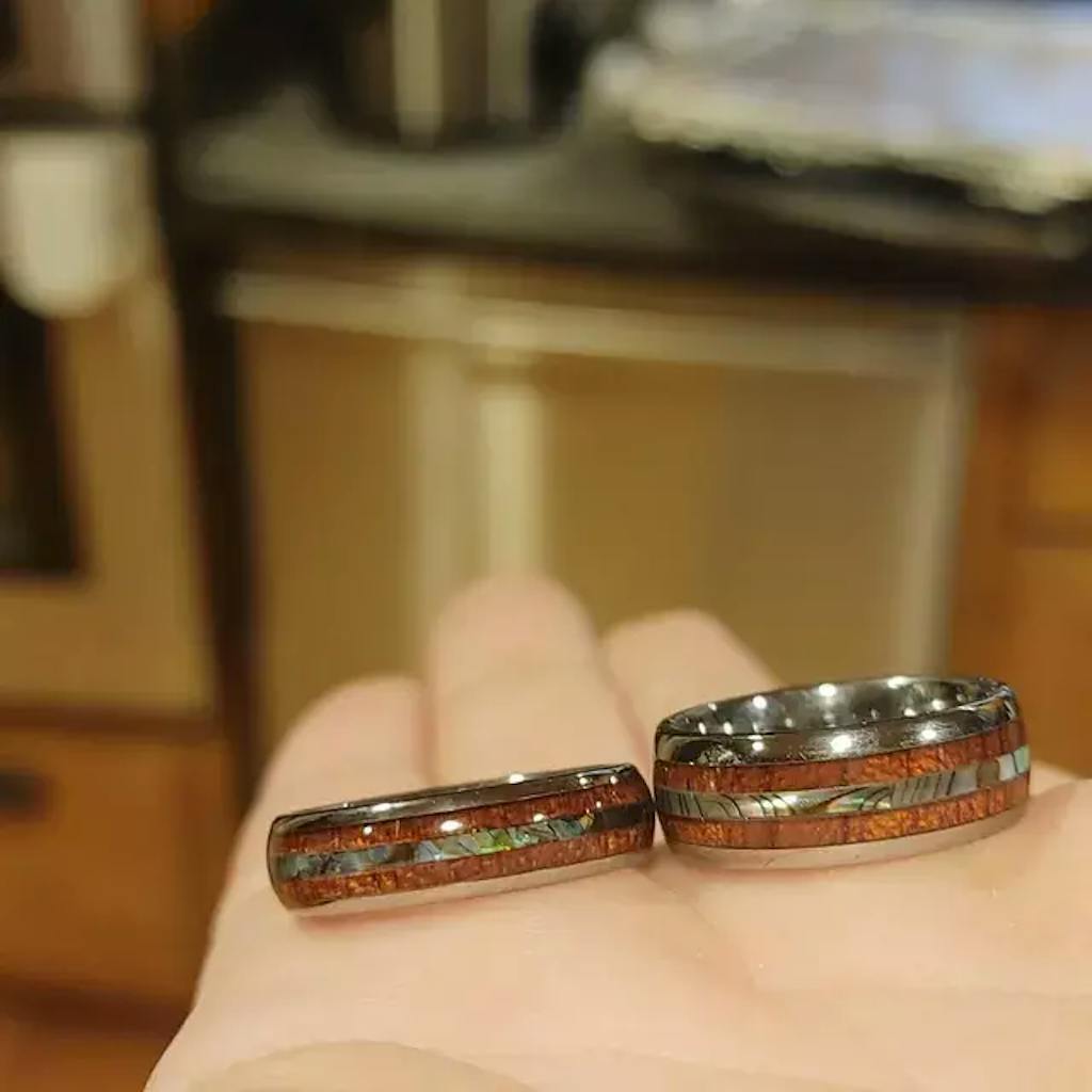 The rings are beautiful! My fiance, now husband, is an avid deer hunter so the rings were perfect! The inscription inside was perfect also. We are very pleased with the quality, true to size sizing, and how fast they were delivered