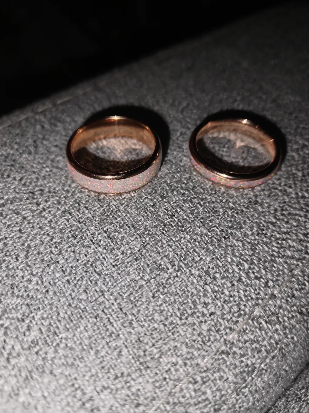 HIS AND HERS ENGAGEMENT-WEDDING RINGS - FIRE OPAL & TUNGSTEN