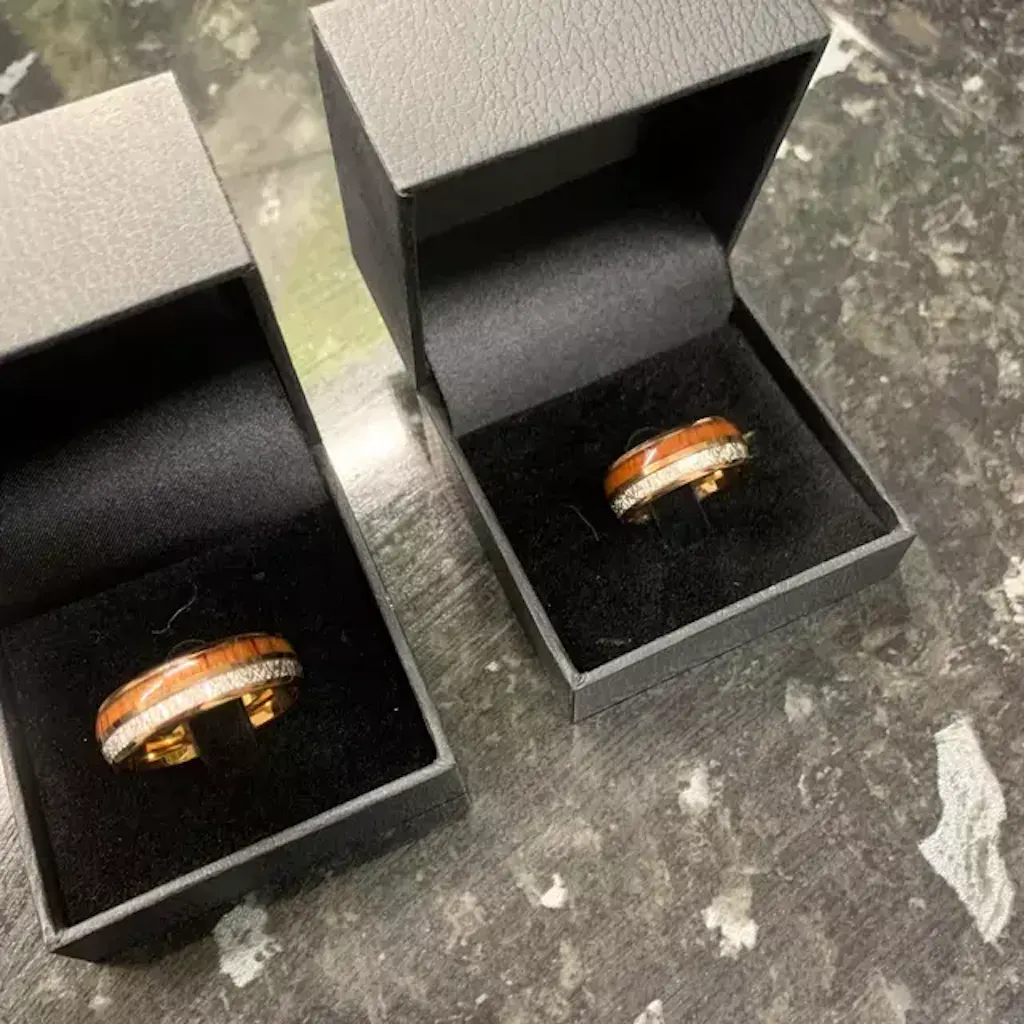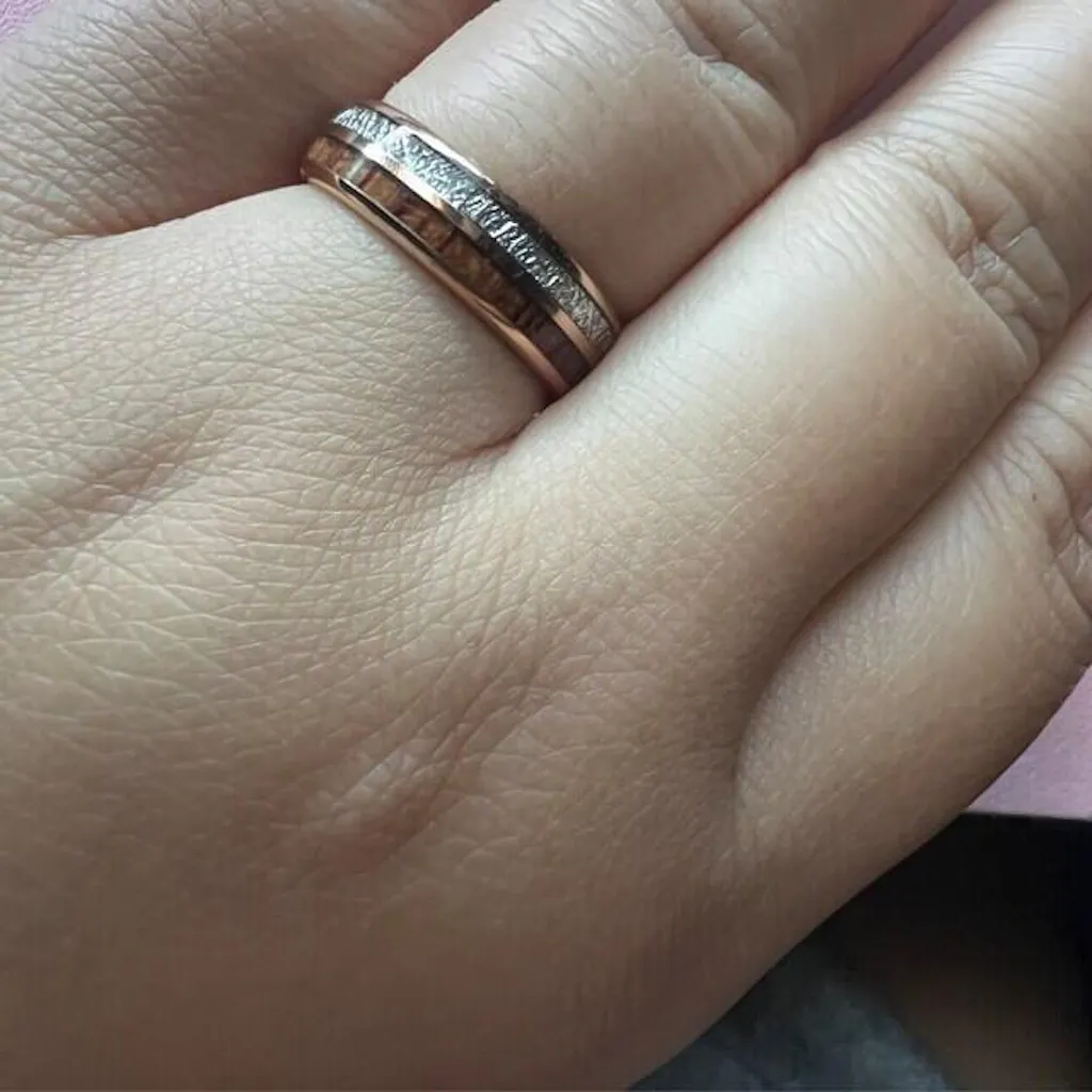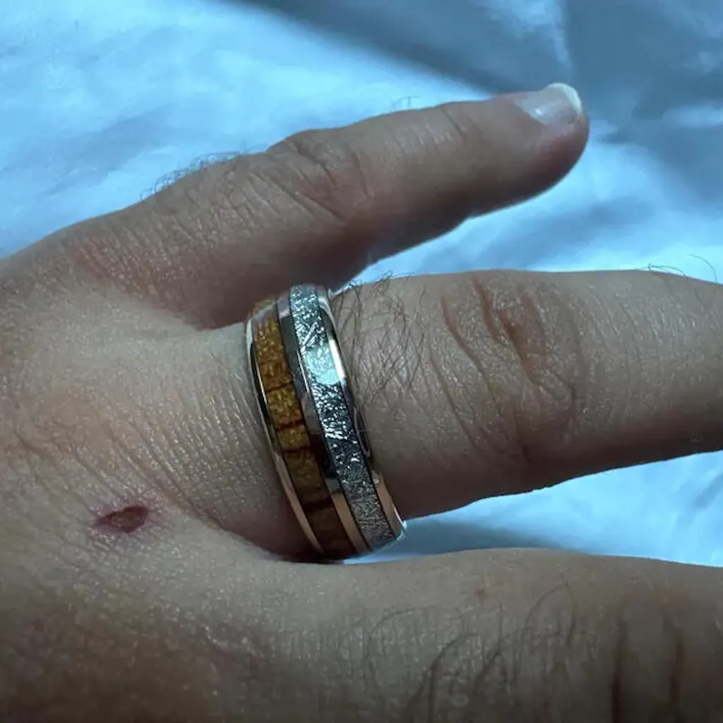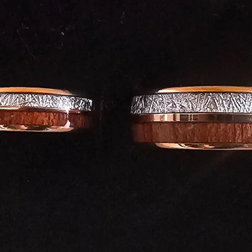 WOODEN RINGS WHISKEY BARREL WOOD, METEORITE & TUNGSTEN